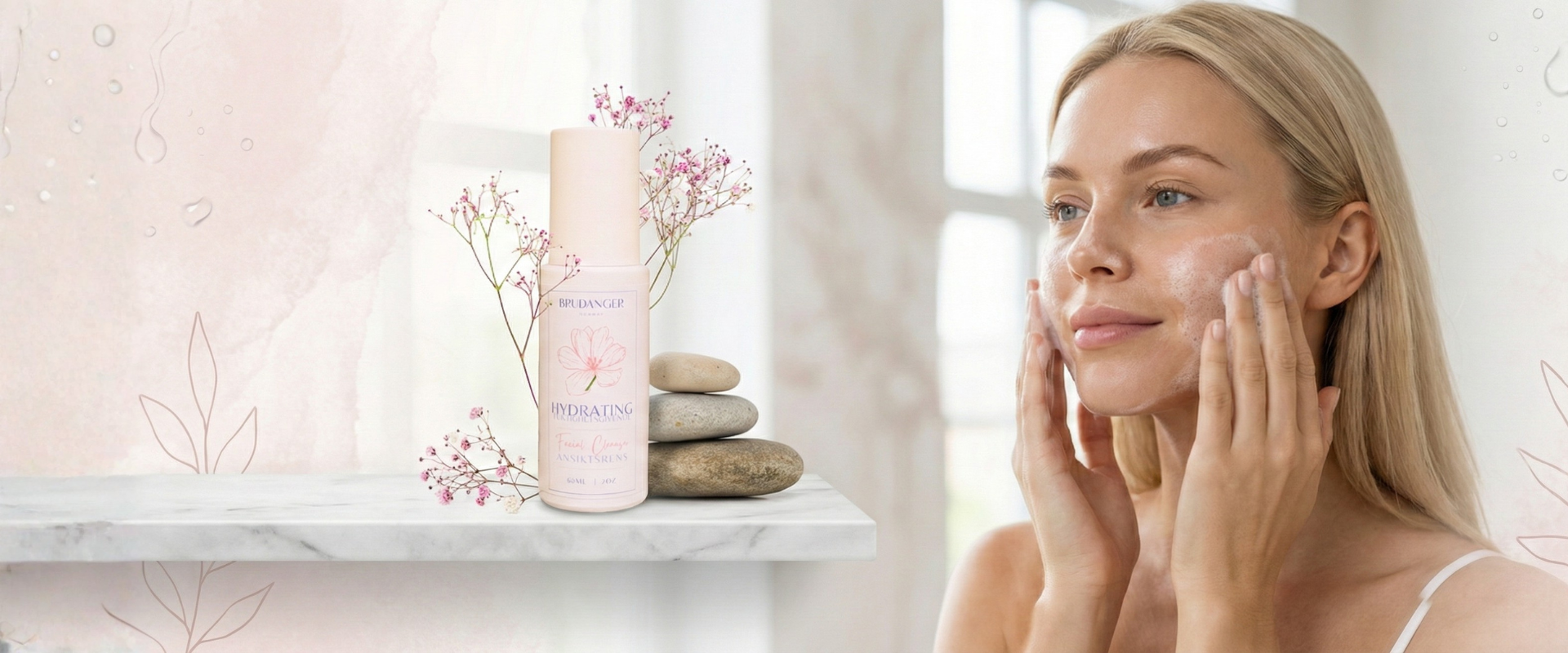 GMO-fri og dyrevennlig hudpleie, utviklet med omsorg for både hud og natur.